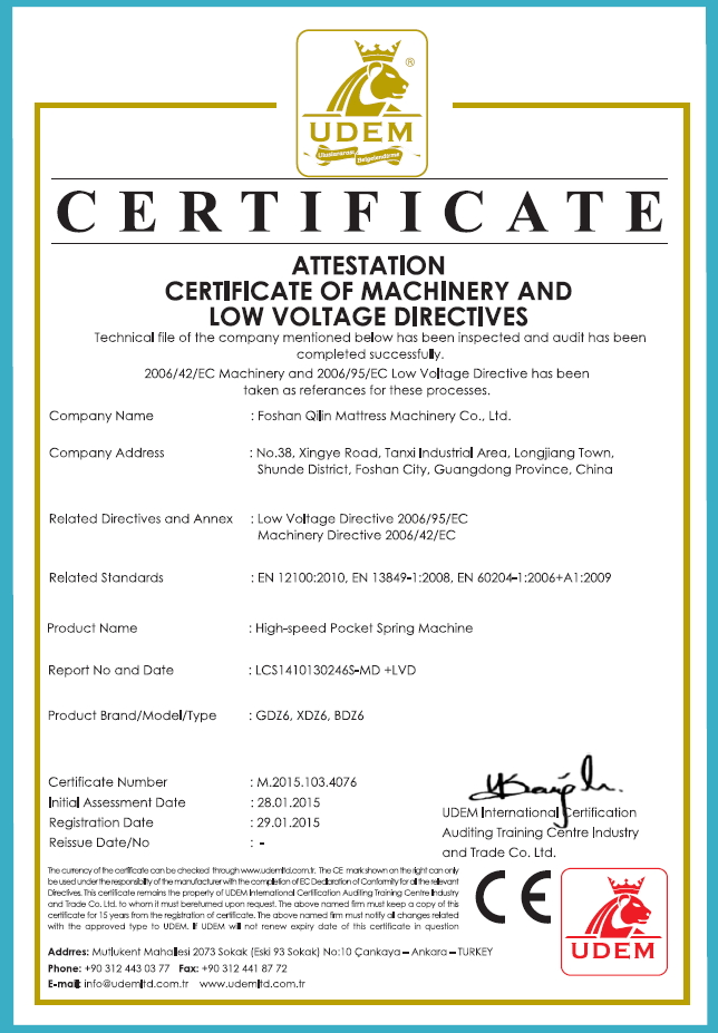 我司自建立以來已經超過十五年的歷史,我們一直致力于提高自己的創新力和競爭力的產品。 我們一如既往的秉承著制造優質的床具機械這個理念,當我們為現金的市場設計新產品時,給客戶一個更好的產品這個想法一直在我們的腦海中,時刻提醒著我們。就是這種質量與價值的相結合,使得我們一直在世界市場上不斷前進我司自建立以來已經超過十五年的歷史,我們一直致力于提高自己的創新力和競爭力的產品。 我們一如既往的秉承著制造優質的床具機械這個理念,當我們為現金的市場設計新產品時,給客戶一個更好的產品這個想法一直在我們的腦海中,時刻提醒著我們。就是這種質量與價值的相結合,使得我們一直在世界市場上不斷前進